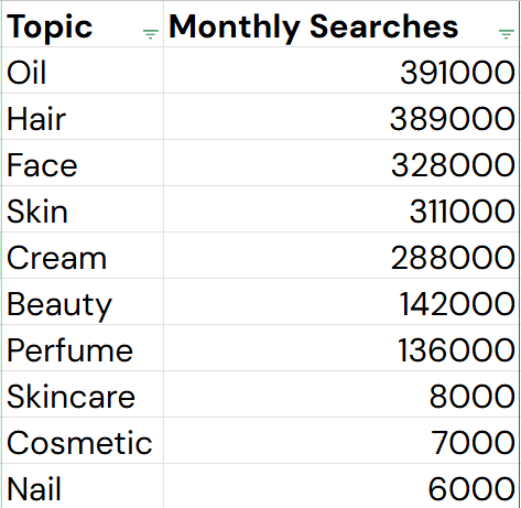 - SEO optimization for beauty search terms